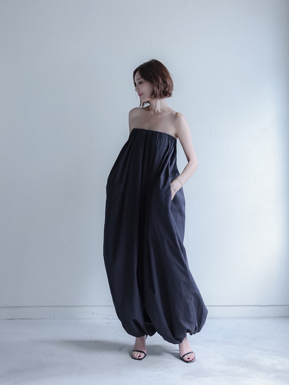 大胆なシルエットが存在感を放つサロペットです。着心地抜群で、立体感スタイルアップまで叶えてくれる、贅沢な一着です。生地は、程よい厚みでロングシーズン楽しんで頂きます。リゾートからシティまで幅広く活躍できる一押しアイテムです。
