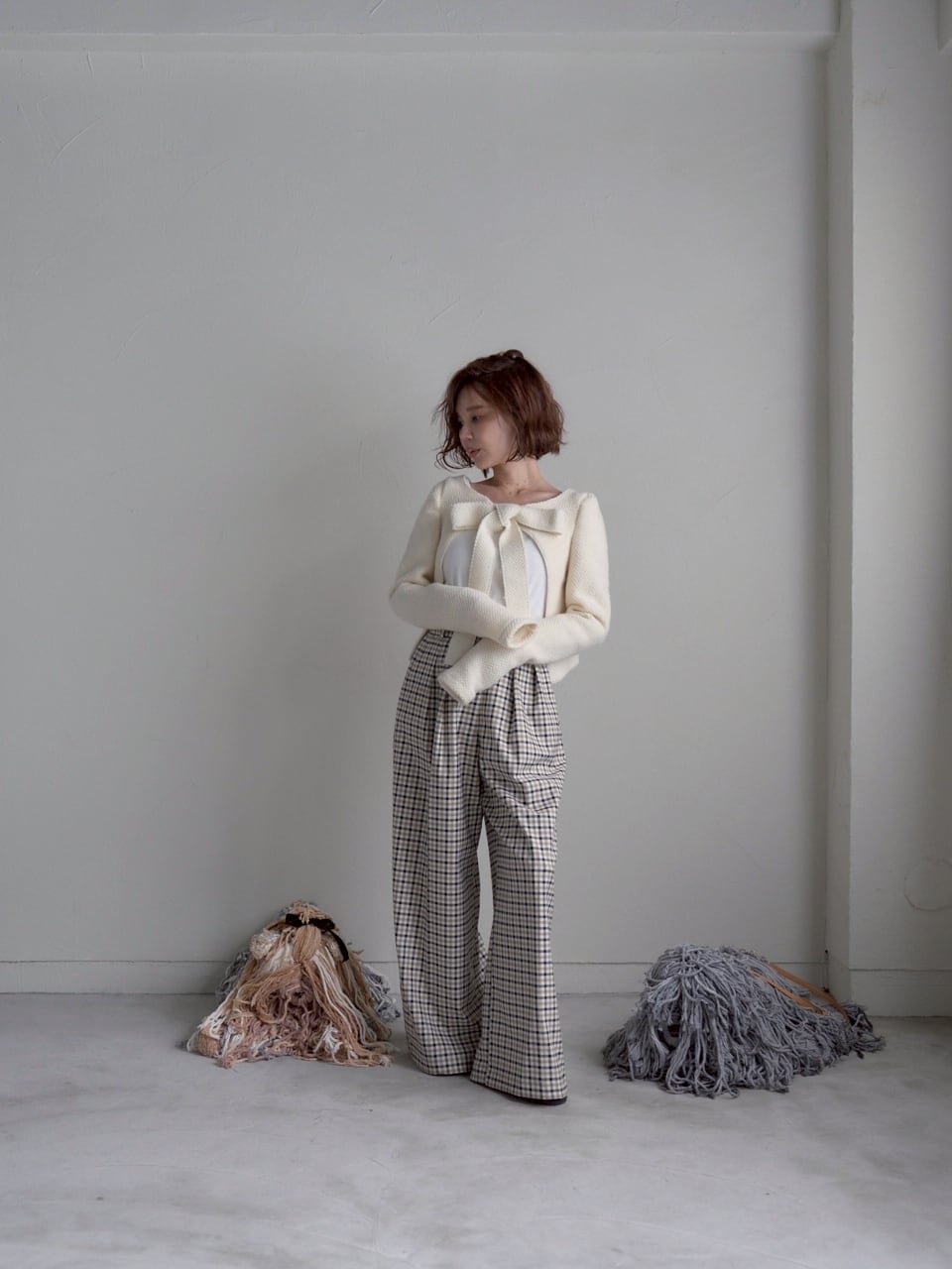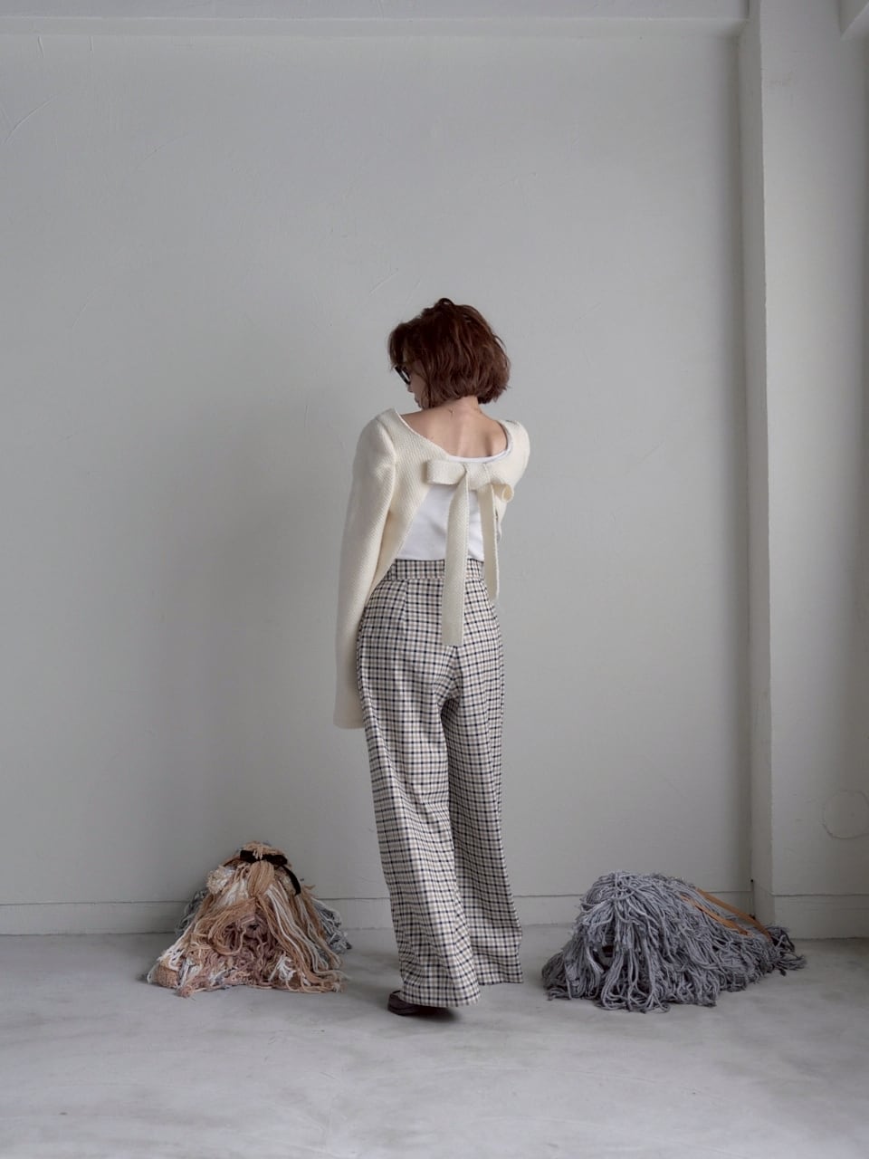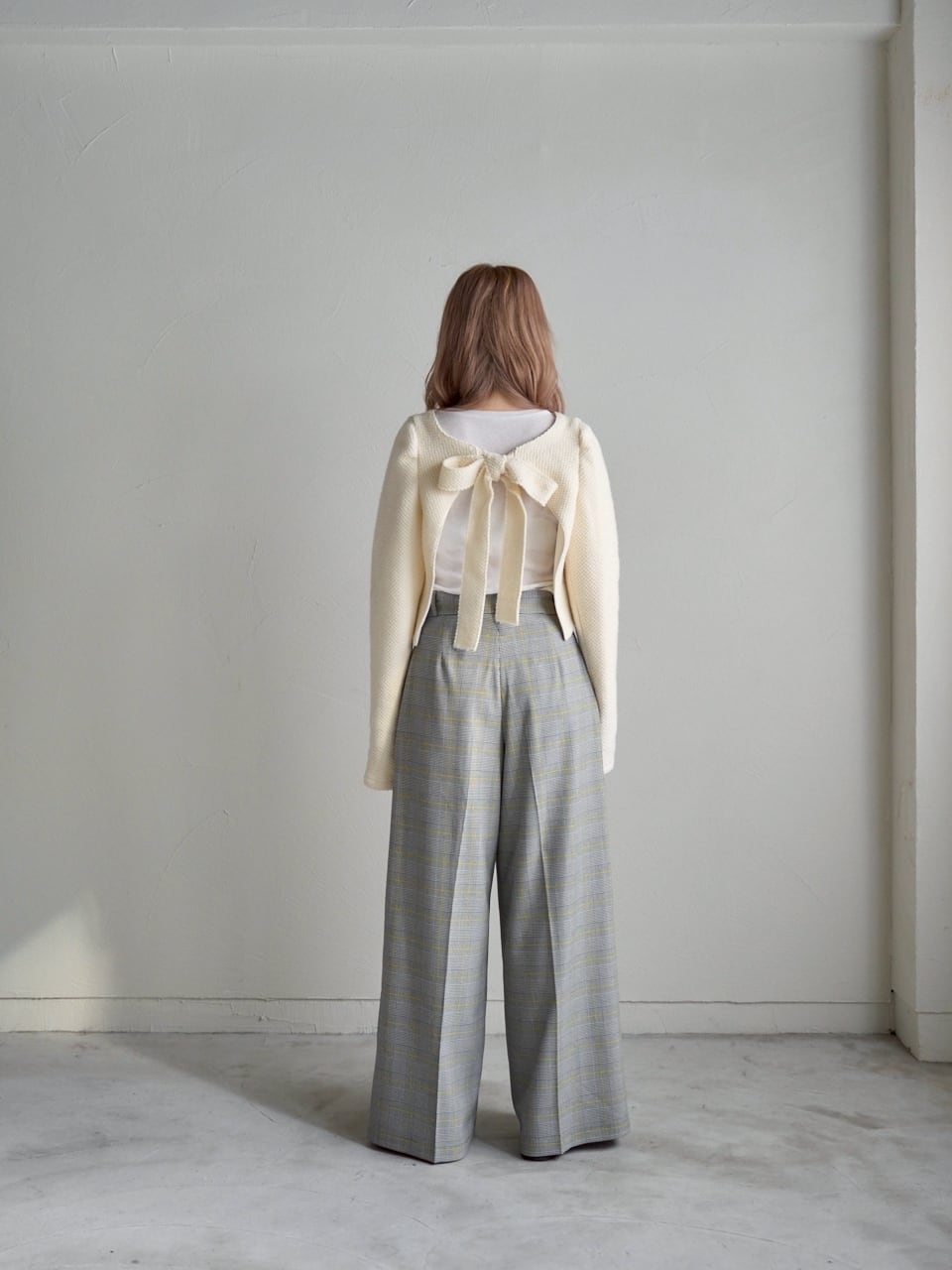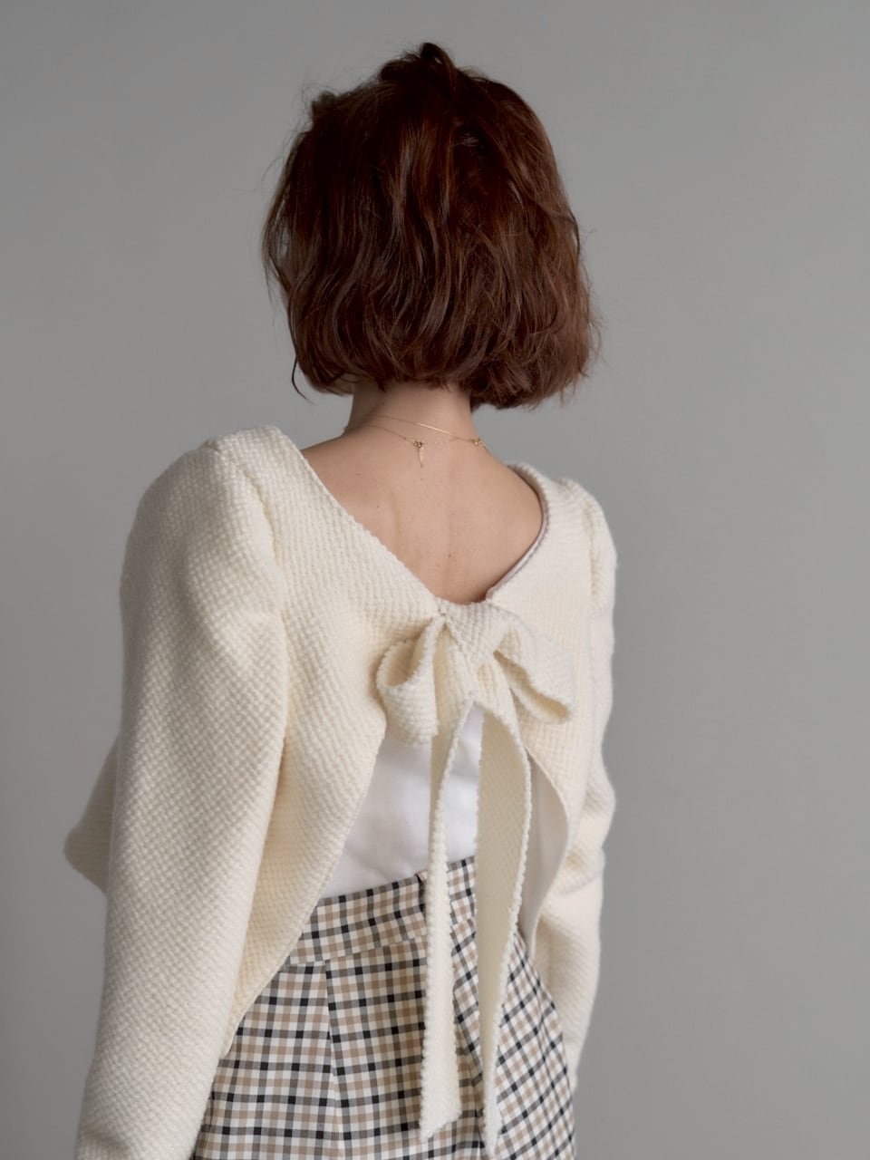 リボンを前にすれば可愛らしく、後ろにすればぐっと大人っぽい印象に。気分や合わせるボトムスで雰囲気をガラッと変えられるので、コーディネートの幅がぐんと広がる上質ニットです。