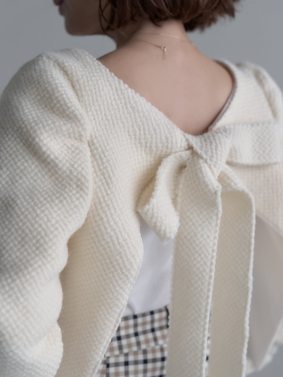 今年らしいクロップド丈とふんわりとしたパフスリーブで、着るだけで旬のスタイルが完成します。最大のポイントは、前後どちらを前にしても着られる2WAYデザイン◎