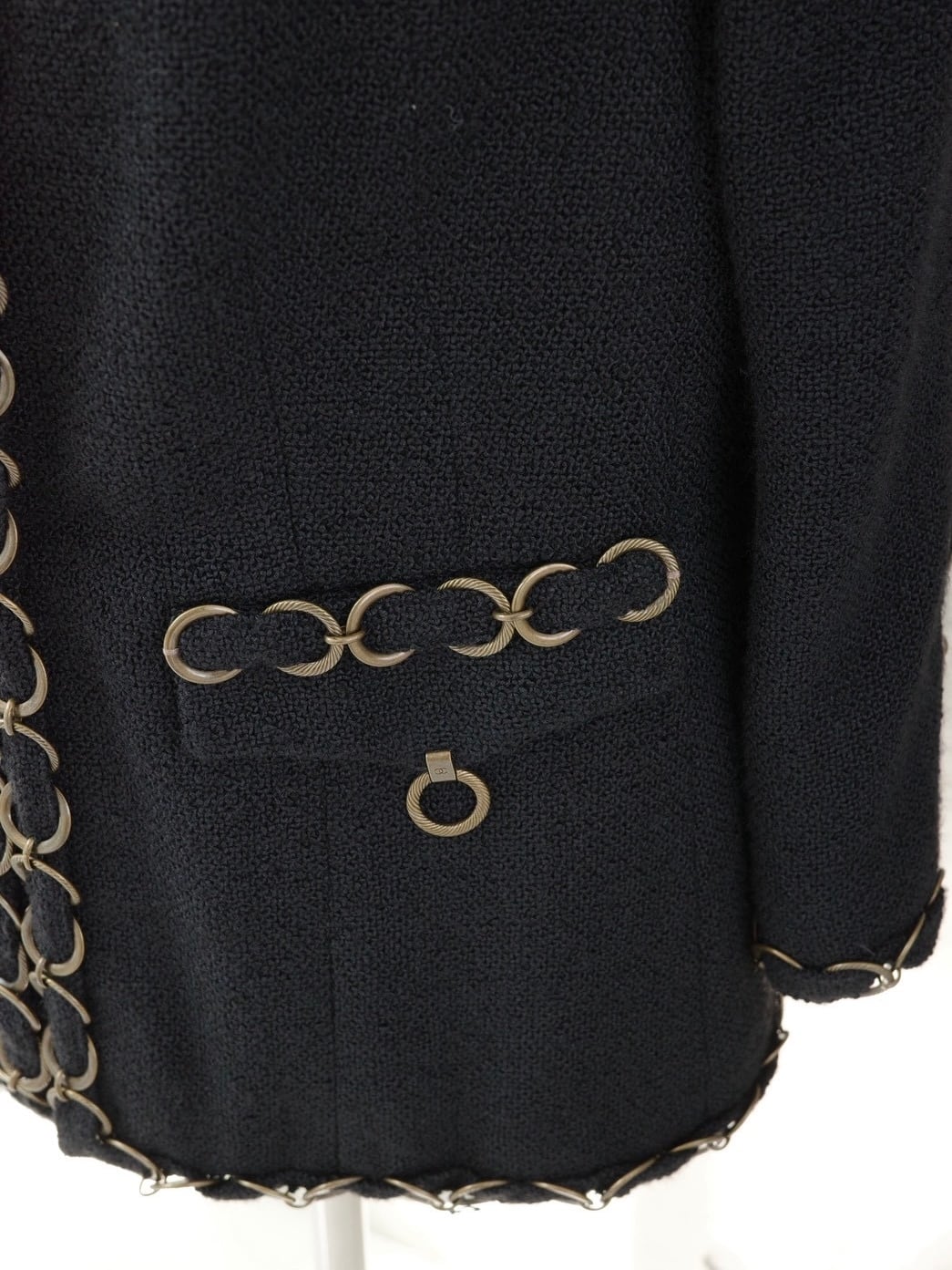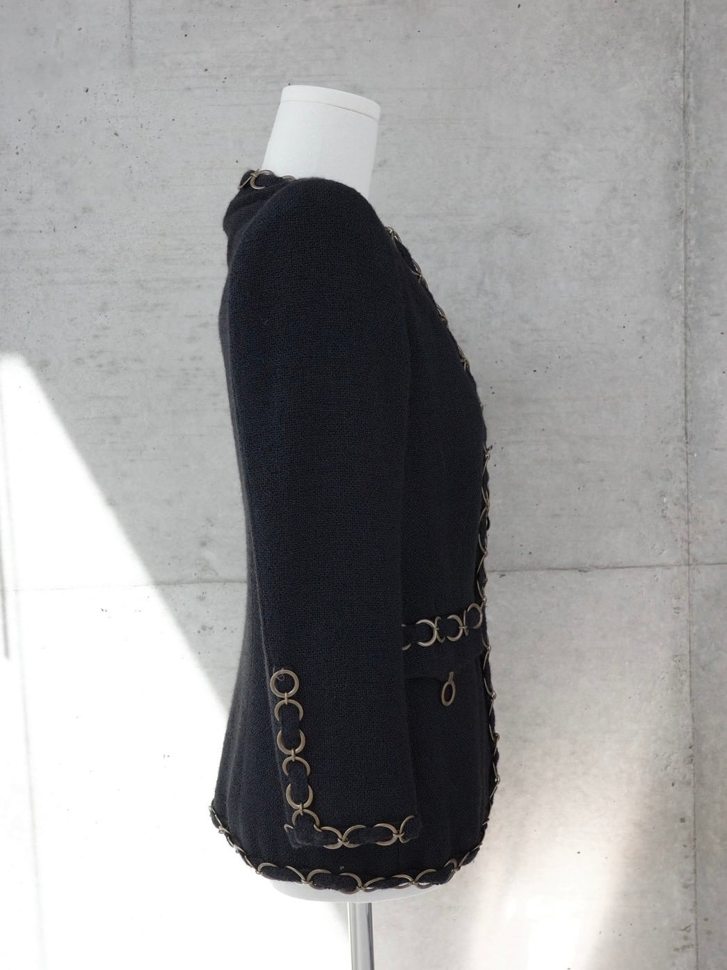フロントやポケット、裾にココモチーフの連なるシャネルならではジャケット。